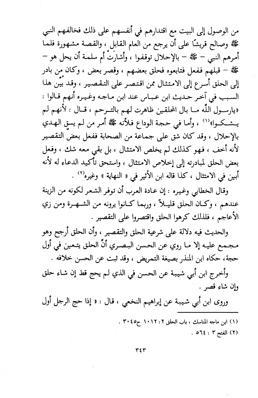(¬1) ابن ماجه المناسك، باب الحلق 2: 1012 ح 3045.