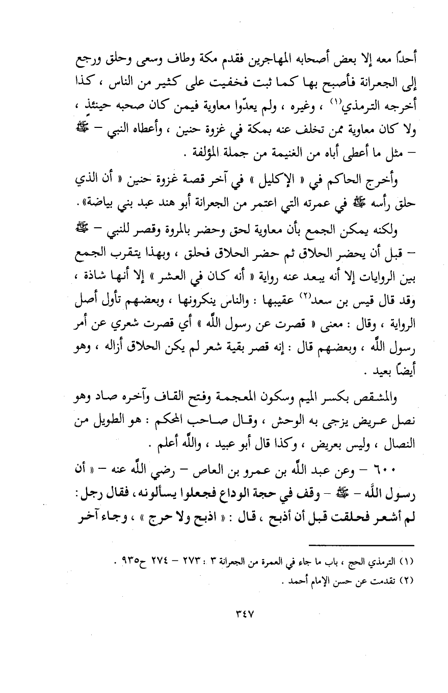 (¬1) الترمذي الحج، باب ما جاء في العمرة من الجعرانة 3: 273 - 274 ح 935.
