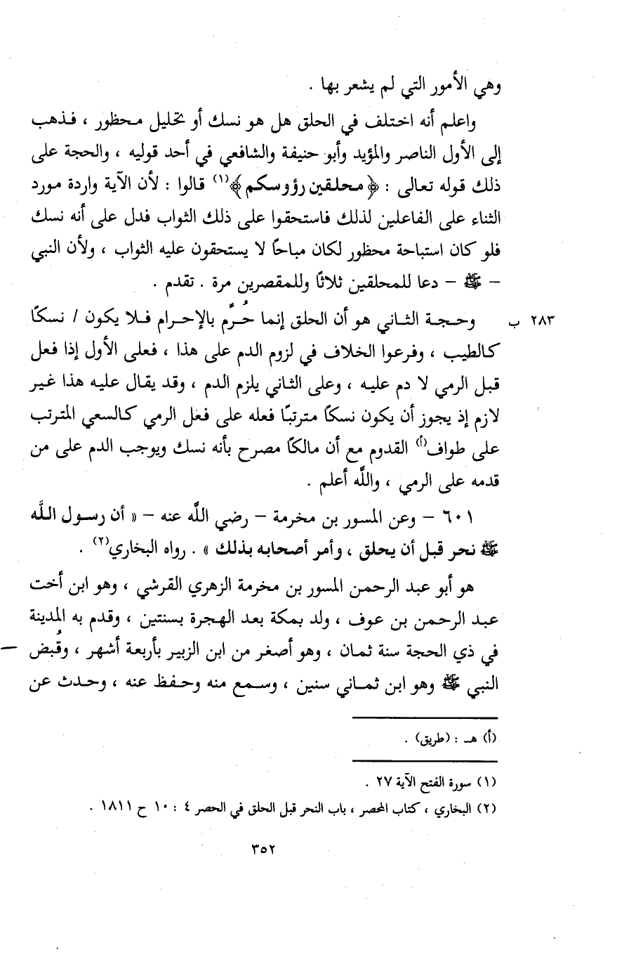 (¬2) البخاري، كتاب المحصر، باب النحر قبل الحلق في الحصر 4: 10 ح 1811.