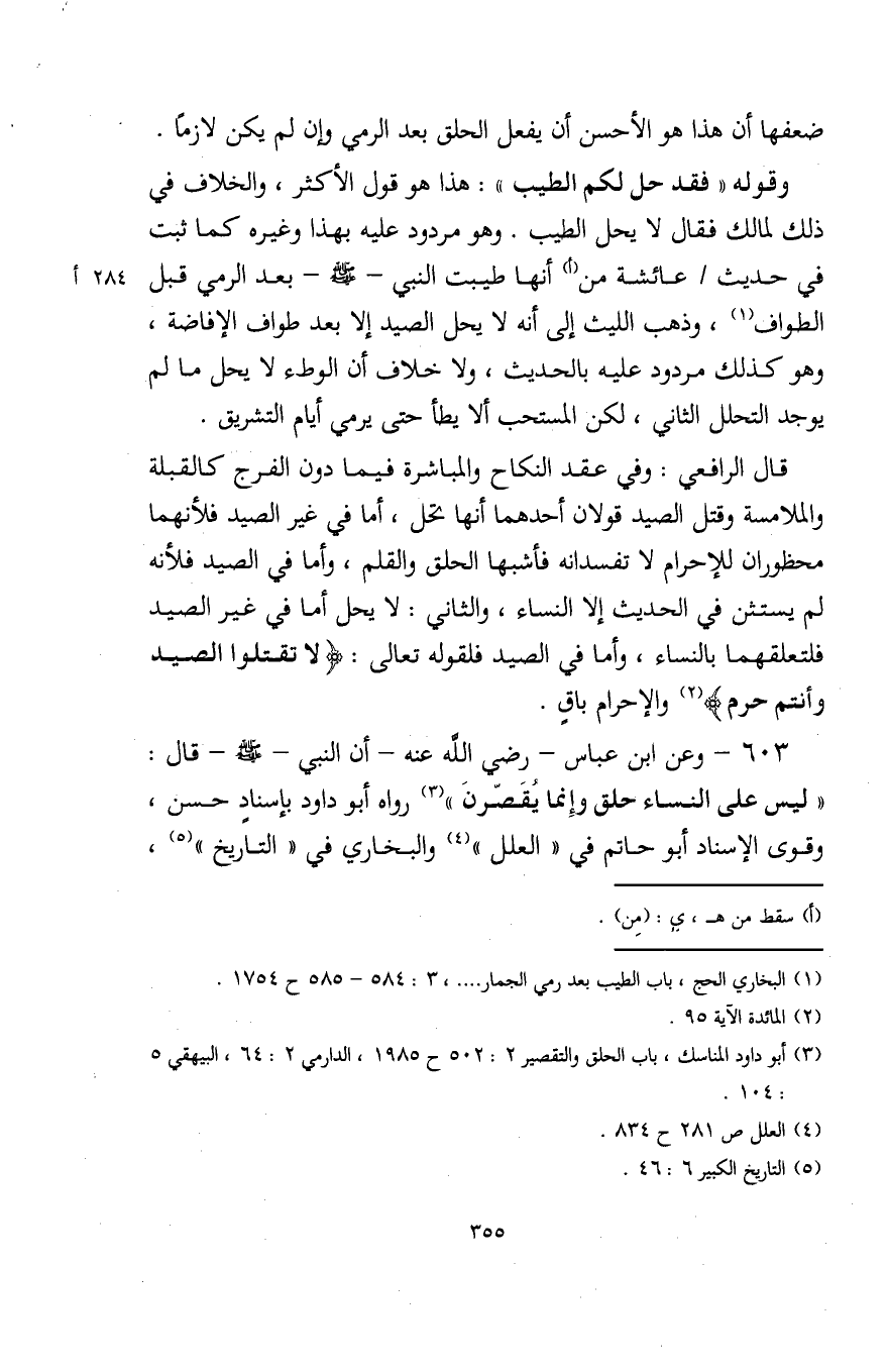 (¬1) البخاري الحج، باب الطيب بعد رمي الجمار. . . .، 3: 584 - 585 ح 1754.