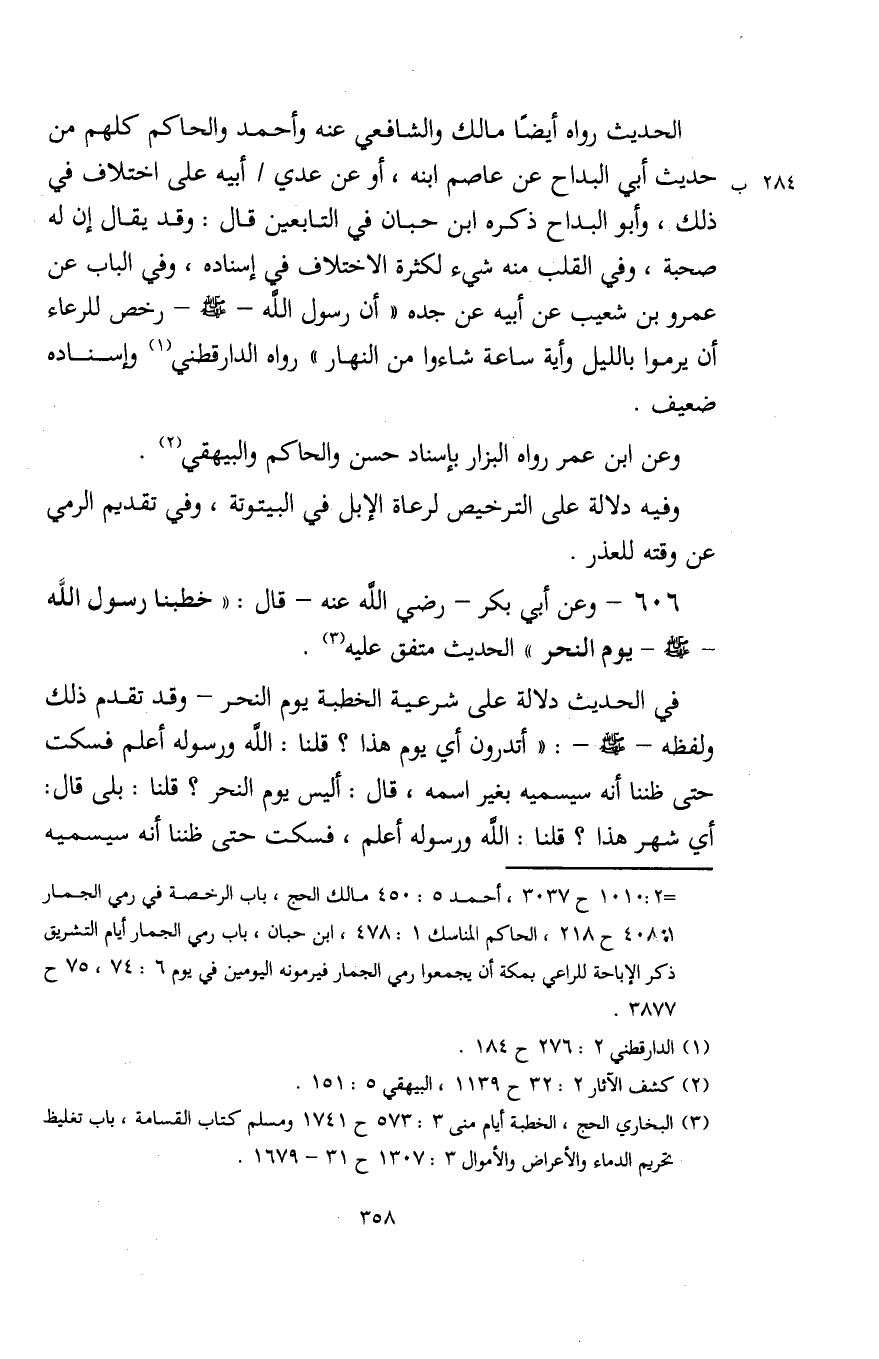 = 2: 1010 ح 3037، أحمد 5: 450 مالك الحج، باب الرخصة في رمي الجمار 1: 408 ح 218، الحاكم المناسك 1: 478، ابن حبان، باب رمي الجمار أيام التشريق ذكر الإباحة للراعي بمكة أن يجمعوا رمي الجمار فيرمونه اليومين في يوم 6: 74، 75 ح 3877.