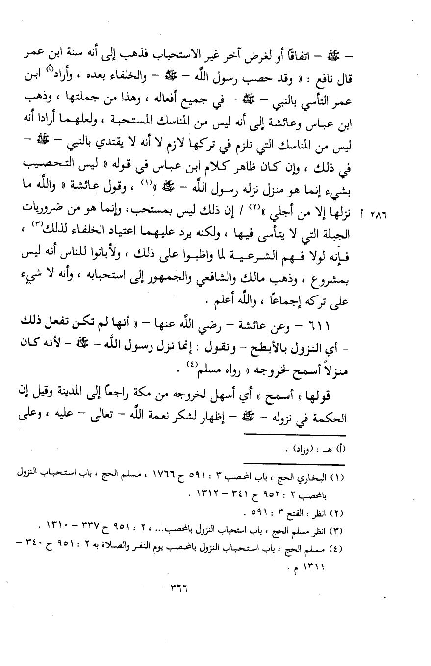(¬1) البخاري الحج، باب المحصب 3: 591 ح 1766، مسلم الحج، باب استحباب النزول بالمحصب 2: 952 ح 341 - 1312.