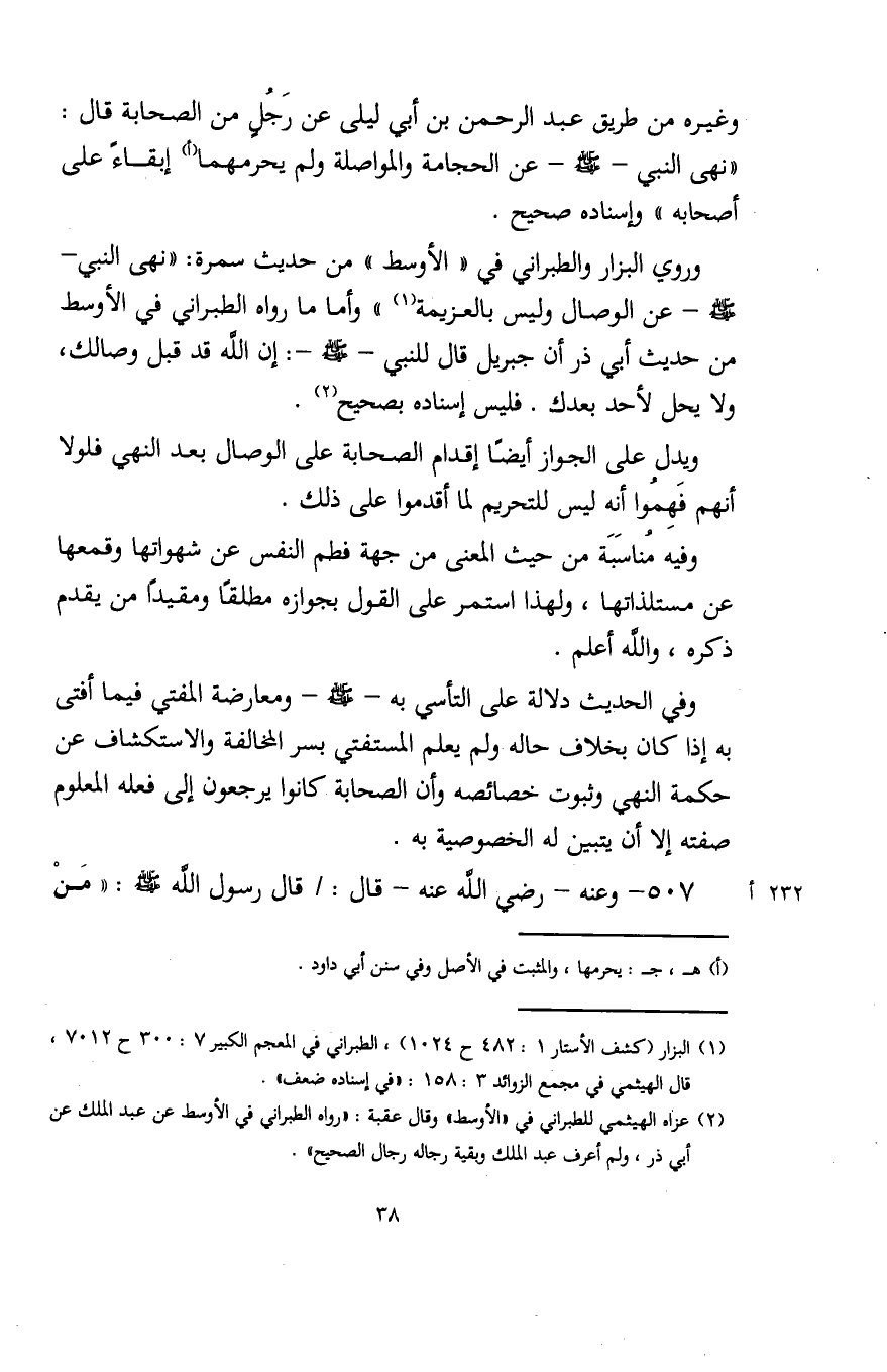 وغيره من طريق عبد الرحمن بن أبي ليلى عن رَجُلٍ من الصحابة قال: "نهى النَّبيُّ - صلى الله عليه وسلم - عن الحجامة والمواصلة ولم يحرمهما (أ) إبقاءً على أصحابه" وإسناده صحيح.