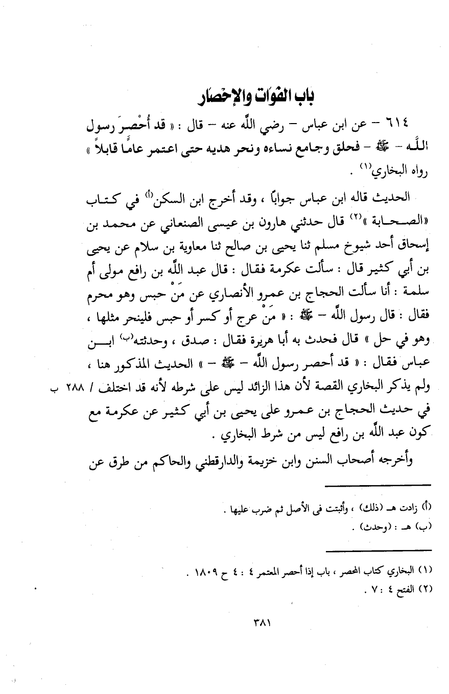 (¬1) البخاري كتاب المحصر، باب إذا أحصر المعتمر 4: 4 ح 1809.