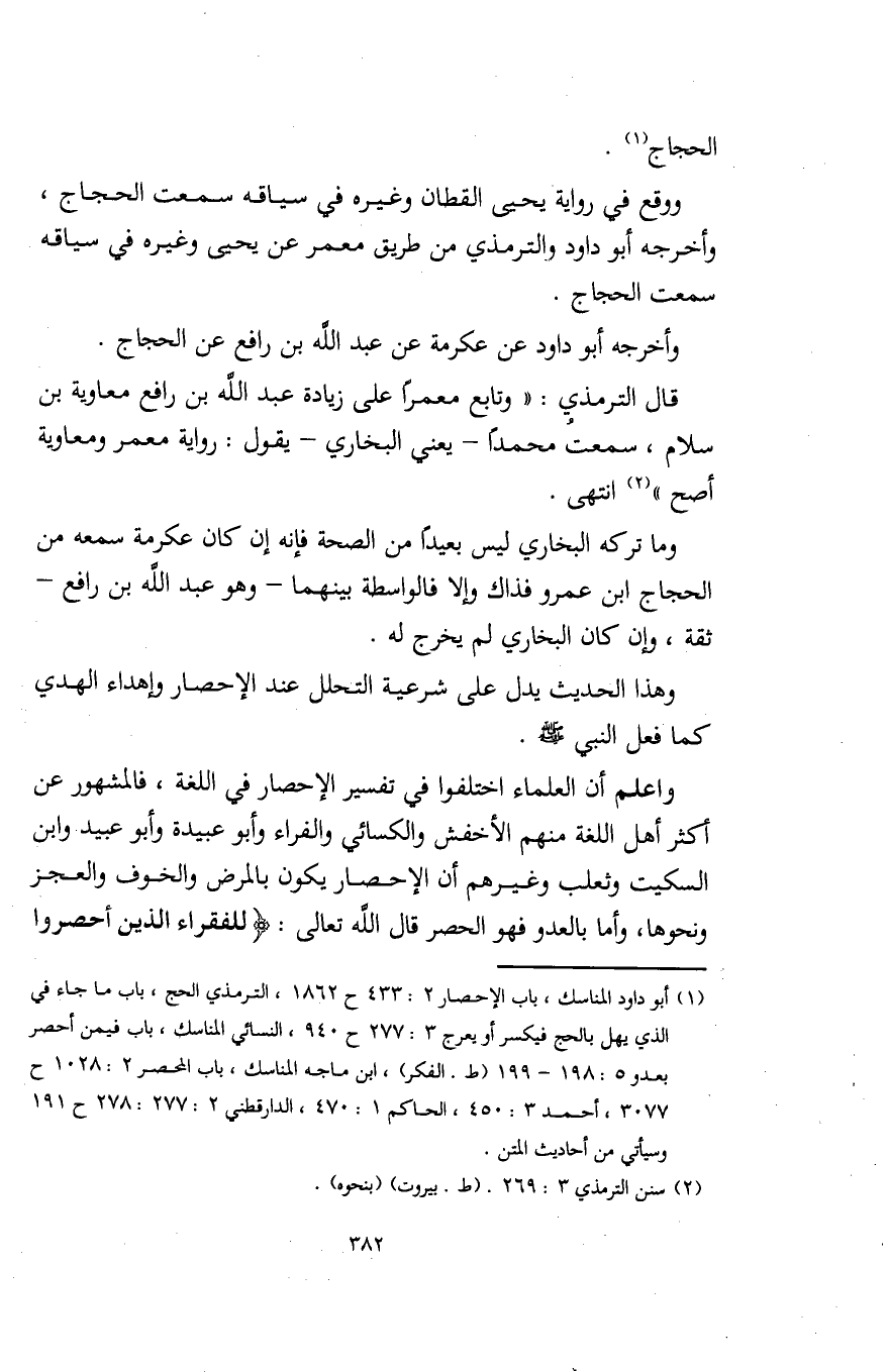 (¬1) أبو داود المناسك، باب الإحصار 2: 433 ح 1862، الترمذي الحج، باب ما جاء في الذي يهل بالحج فيكسر أو بعرج 3: 277 ح 940، النسلائي المناسك، باب فيمن أحصر بعدو 5: 198 - 199 (ط. الفكر)، ابن ماجه المناسك، باب المحصر 2: 1028 ح 3077، أحمد 3: 450، الحاكم 1: 470، الدارقطني 2: 277: 278 ح 191 وسيأتي من أحاديث المتن.