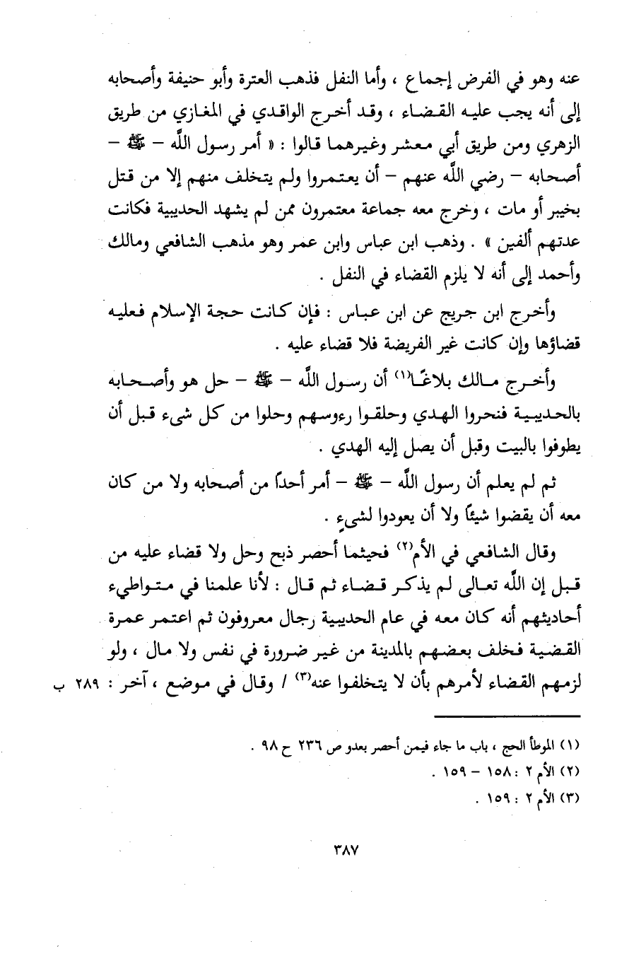 (¬1) الموطأ الحج، باب ما جاء فيمن أحصر بعدو ص 236 ح 98.