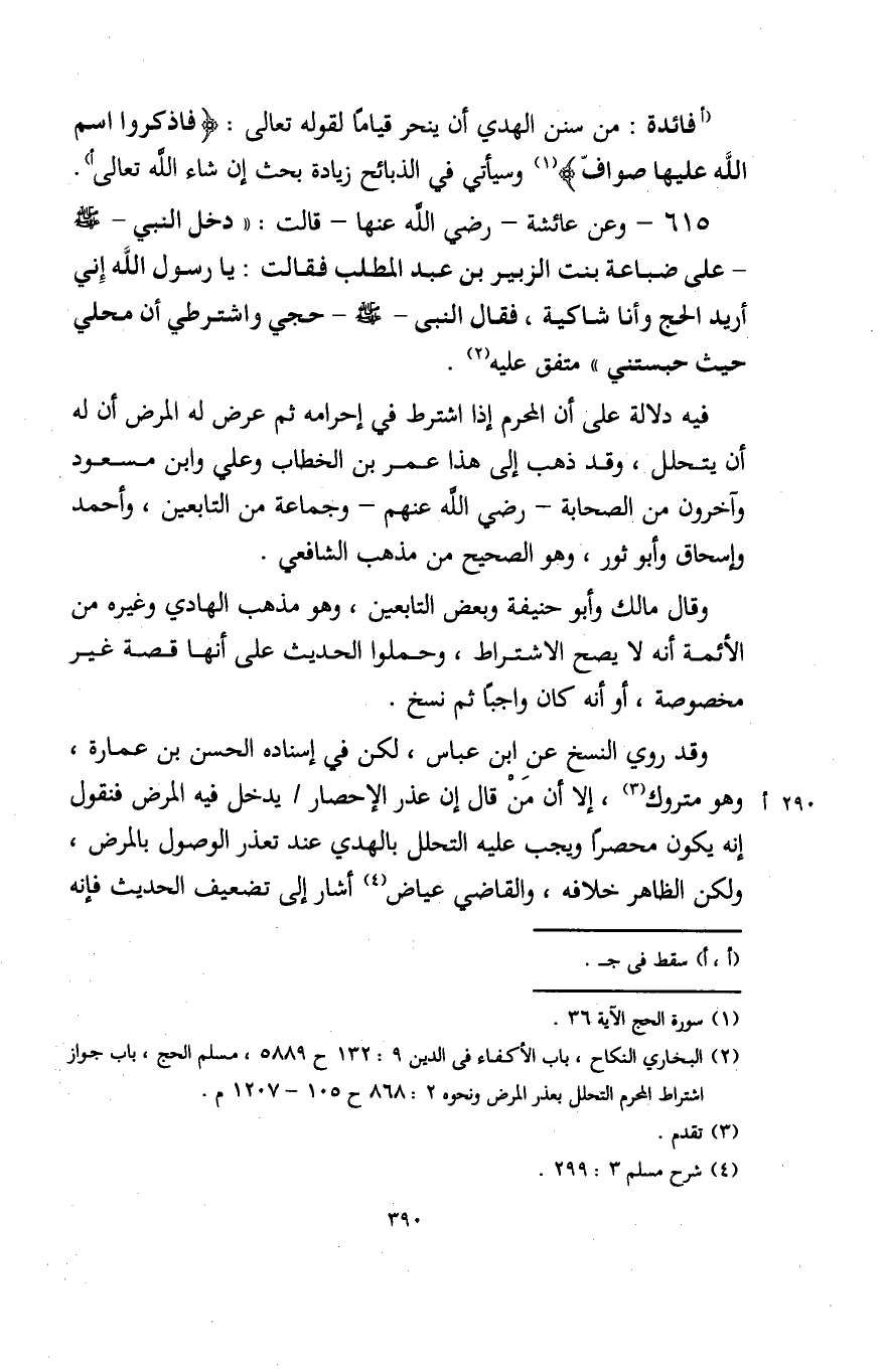 615 - وعن عائشة - رضي الله عنها - قالت: "دخل النبي - صلى الله عليه وسلم - على ضباعة بنت الزبير بن عبد المطلب فقالت: يا رسول الله إِني أريد الحج وأنا شاكية، فقال النبي - صلى الله عليه وسلم - حجي واشترطي أن محلي حيث حبستني" متفق عليه (¬2).