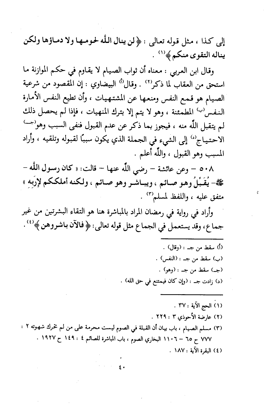 (¬3) مسلم الصيام، باب بيان أن القبلة في الصوم ليست محرمة على من لم تحرك شهوته 2: 777 ح 65 - 1106 البُخاريّ الصوم، باب المباشرة للصائم 4: 149 ح 1927.