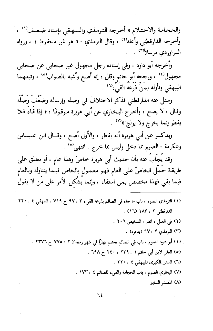 (¬1) التِّرمذيُّ الصوم، باب ما جاء في الصائم يذرعه القيء 3: 97 ح 719، البيهقي 4: 220 الدارقطني 2: 183 (16).