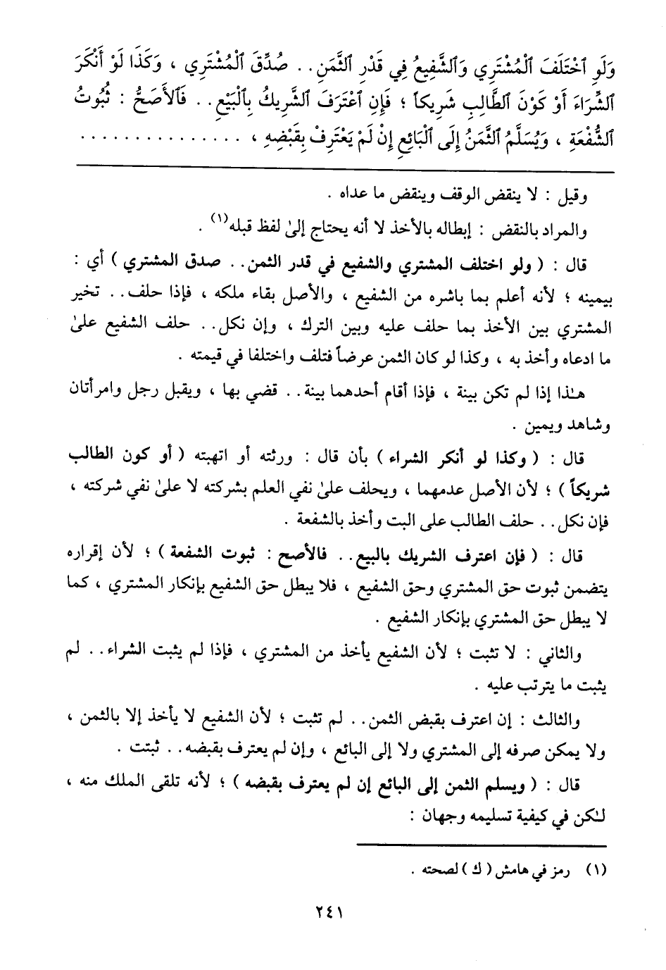 وَلَوِ اخْتَلَفَ الْمُشْتَرِي وَالشَّفِيعُ فِي قَدْرِ الثَّمَنِ .. صُدِّقَ الْمُشْتَرِي، وَكَذَاَ لَوْ أَنْكَرَ الشِّرَاَءَ أَوْ كَوْنَ الطَّالِبِ شَرِيكاً؛ فَإِنِ اعْتَرَفَ الشَّرِيكُ بِالْبَيْعِ .. فَالأَصَحُّ: ثُبُوتُ الشُّفْعَةِ، وَيُسَلَّمُ الثَّمَنُ إِلَى الْبَائِعِ إِنْ لَمْ يَعْتَرِفْ بِقَبْضِهِ،