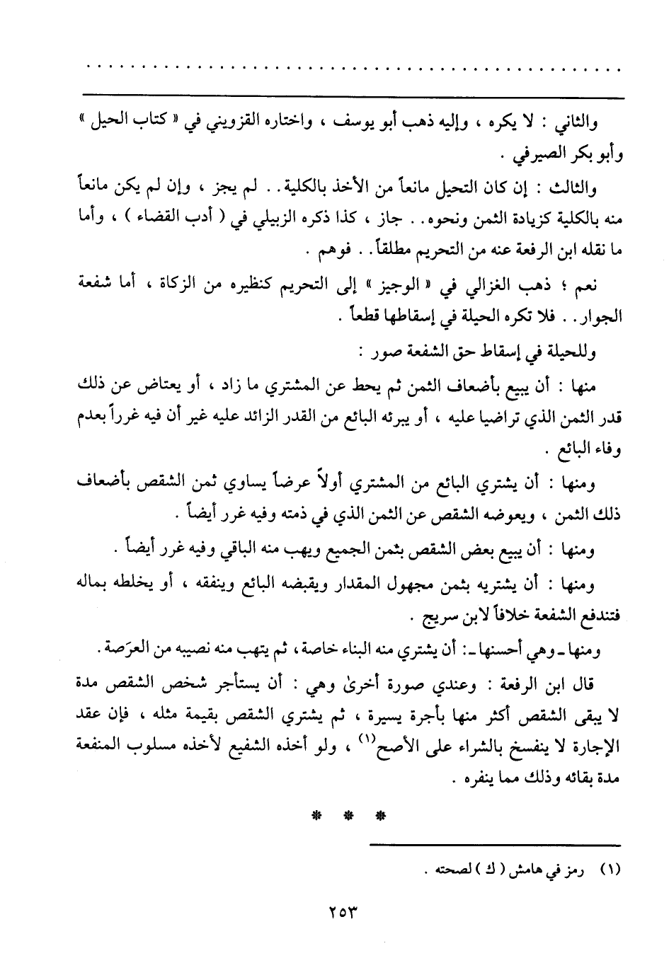 والثالث: إن كان التحيل مانعاً من الأخذ بالكلية .. لم يجز، وإن لم يكن مانعاً منه بالكلية كزيادة الثمن ونحوه .. جاز، كذا ذكره الزبيلي في (أدب القضاء)، وأما ما نقله ابن الرفعة عنه من التحريم مطلقاً .. فوهم.