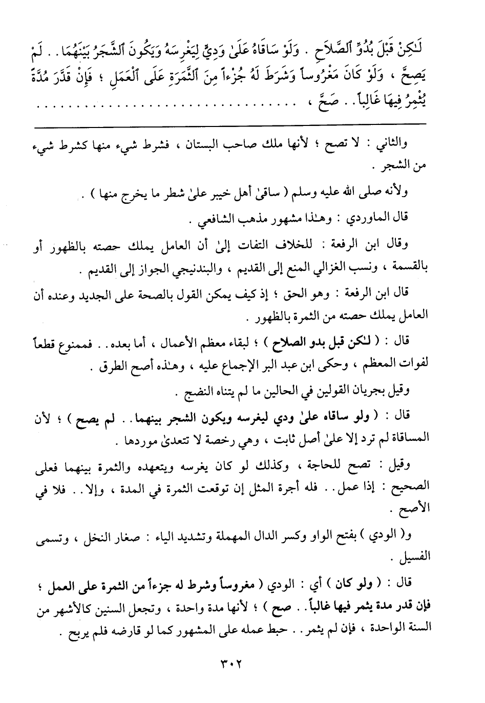 لَكِنْ قَبْلَ بَدُوِّ الصَّلاَحِ. وَلَوْ سَاقَاهُ عَلَى وَدِيٍّ لِيَغْرِسَهُ وَيَكْونَ الشَّجَرْ بَيْنَهُمَا .. لَمْ يَصِحَّ، وَلَوْ كَانَ مَغْرُوسً وَشَرَطَ لَهُ جُزْءاً مِنَ الثَّمَرَةِ عَلَى الْعَمَلِ؛ فَإِنْ قَدَّرَ مُدَّةً يُثْمِرُ فِيهَا غَالِباً .. صَحَّ،