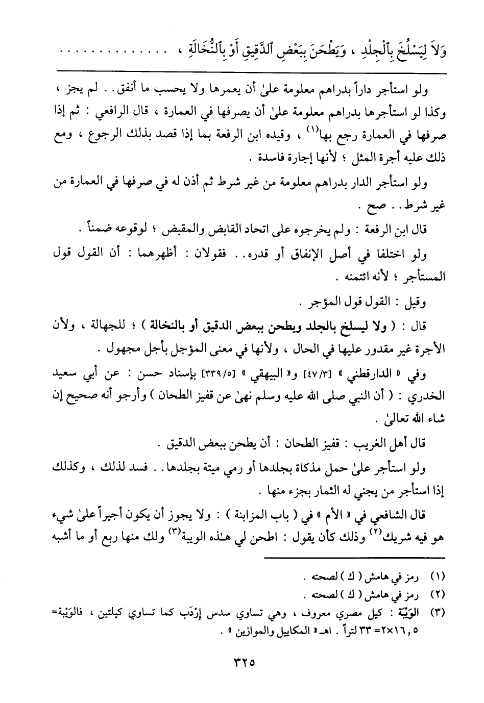 قال: (ولا ليسلخ بالجلد ويطحن ببعض الدقيق أو بالنخالة)؛ للجهالة، ولأن الأجرة غير مقدور عليها في الحال، ولأنها في معنى المؤجل بأجل مجهول.