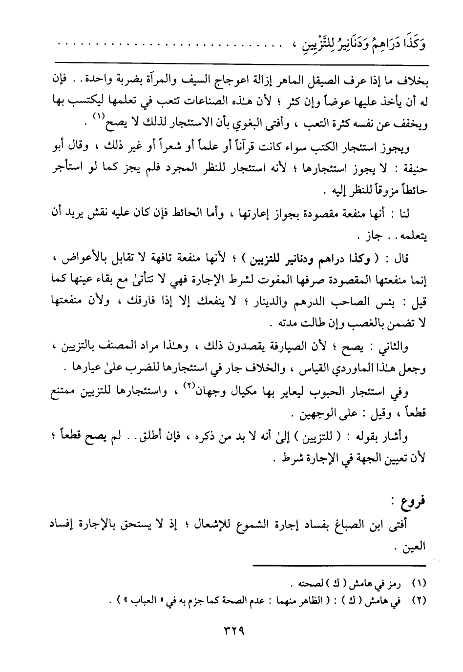 بخلاف ما إذا عرف الصيقل الماهر إزالة اعوجاج السيف والمرآة بضربة واحدة .. فإن له أن يأخذ عليها عوضاً وإن كثر؛ لأن هذه الصناعات تتعب في تعلمها ليكتسب بها ويخفف عن نفسه كثرة التعب، وأفتى البغوي بأن الاستئجار لذلك لا يصح.