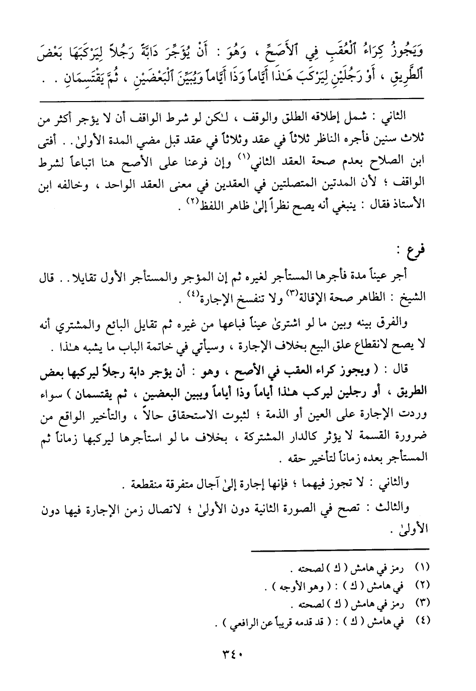 الثاني: شمل إطلاقه الطلق والوقف، لكن لو شرط الواقف أن لا يؤجر أكثر من ثلاث سنين فأجره الناظر ثلاثاً في عقد وثلاثاً في عقد قبل مضي المدة الأولى .. أفتى ابن الصلاح بعدم صحة العقد الثاني وإن فرعنا على الأصح هنا إتباعاً لشرط الواقف؛ لأن المدتين المتصلين في العقدين في معنى العقد الواحد، وخالفه ابن الأستاذ فقال: ينبغي أنه يصلح نظراً إلى ظاهر اللفظ.
