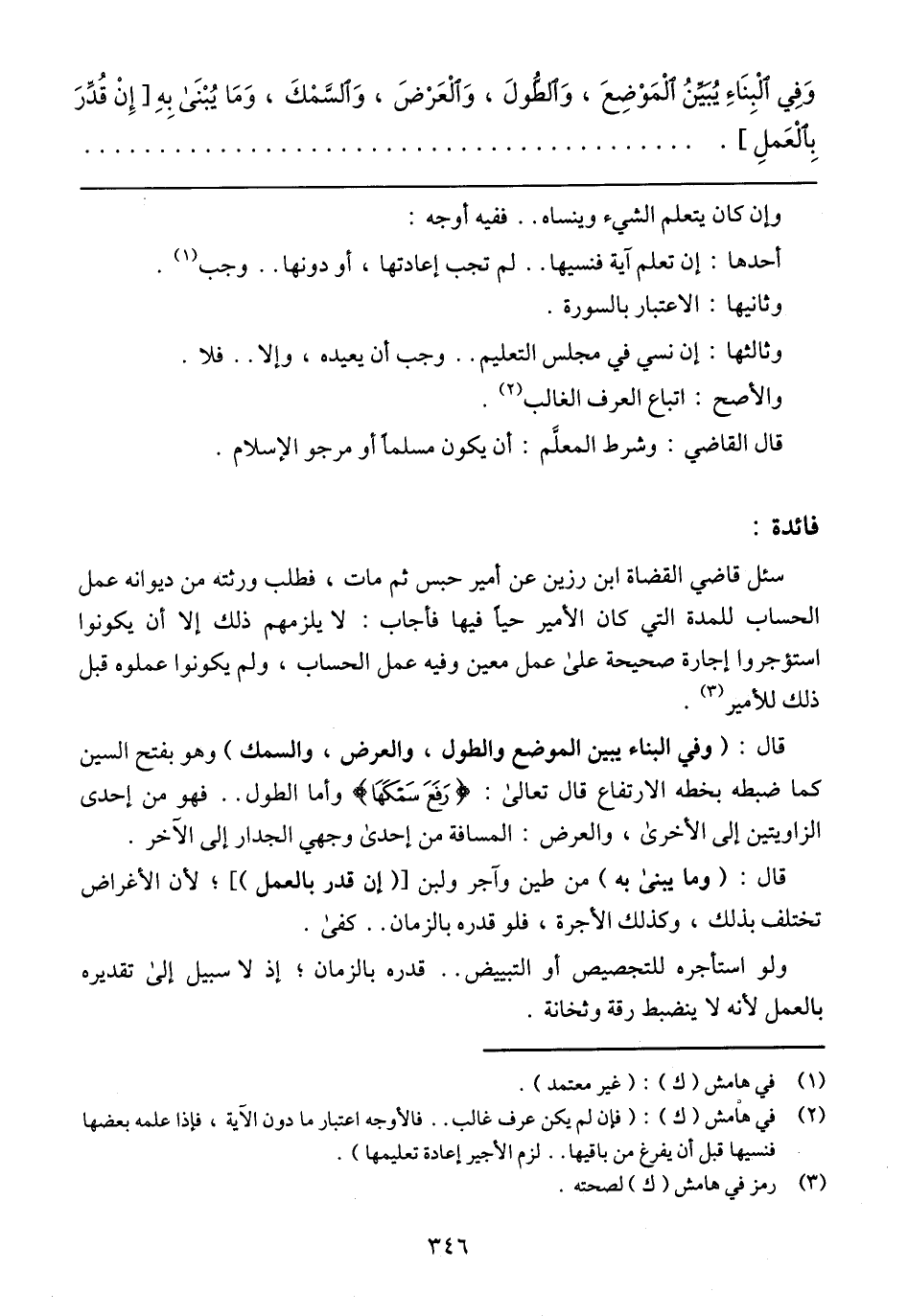 وثالثها: إن نسي في مجلس التعليم .. وجب أن يعيده، وإلا .. فلا.