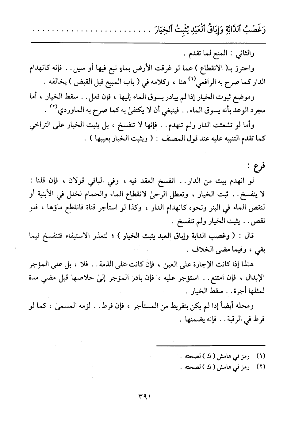 قال: (وغصب الدابة وإباق العبد يثبت الخيار)؛ لتعذر الاستيفاء فتنفسخ فيما بقي، وفيما مضى الخلاف.