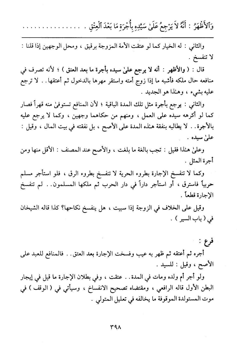 قال: (والأظهر: أنه لا يرجع على سيده بأجرة ما بعد العتق)؛ لأنه تصرف في منافعه حال ملكه فأشبه ما إذا زوج أمته واستقر مهرها بالدخول ثم أعتقها .. لا ترجع عليه بشيء، وهذا هو الجديد.