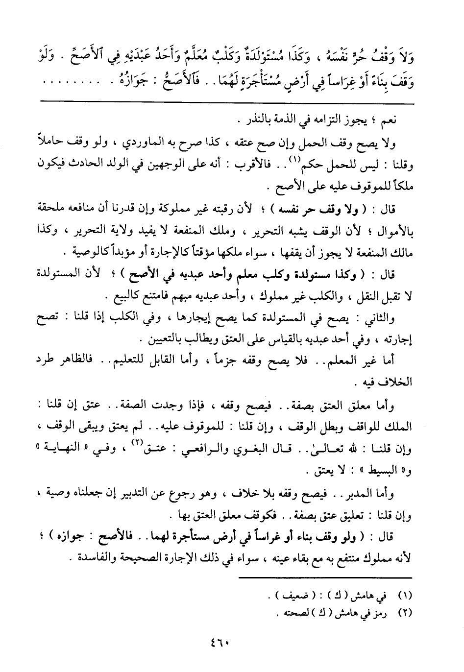 أما غير المعلم .. فلا يصح وقفه جزماً، وأما القابل للتعليم .. فالظاهر طرد الخلاف فيه.