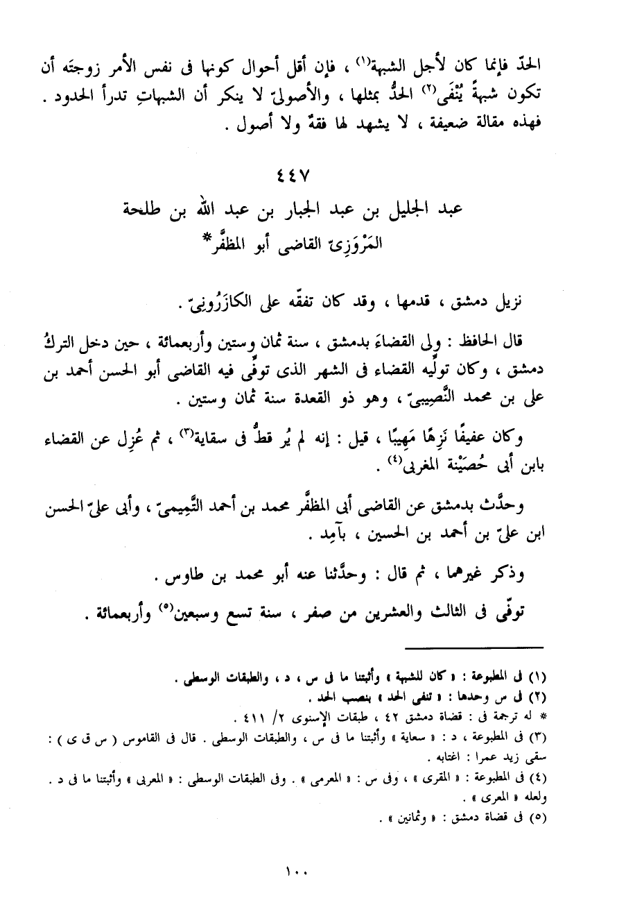 447 - عبد الْجَلِيل بن عبد الْجَبَّار بن عبد الله بن طَلْحَة الْمروزِي القَاضِي أَبُو المظفر