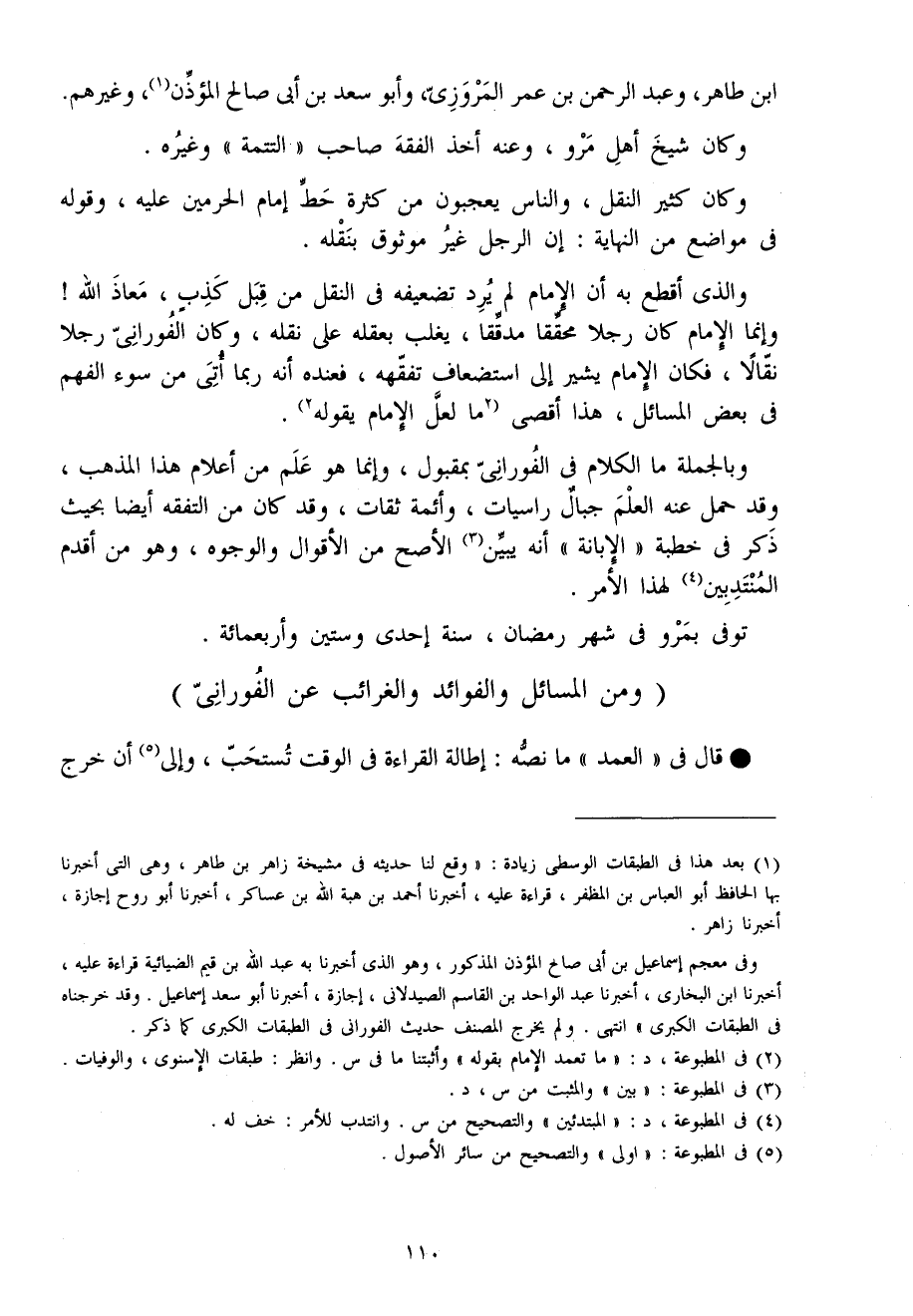 وَبِالْجُمْلَةِ مَا الْكَلَام فِي الفوراني بمقبول وَإِنَّمَا هُوَ علم من أَعْلَام هَذَا الْمَذْهَب وَقد حمل عَنهُ الْعلم جبال راسيات وأئمة ثِقَات وَقد كَانَ من التفقه أَيْضا بِحَيْثُ ذكر فِي خطْبَة الْإِبَانَة أَنه يبين الْأَصَح من الْأَقْوَال وَالْوُجُوه وَهُوَ من أقدم المنتدبين لهَذَا الْأَمر