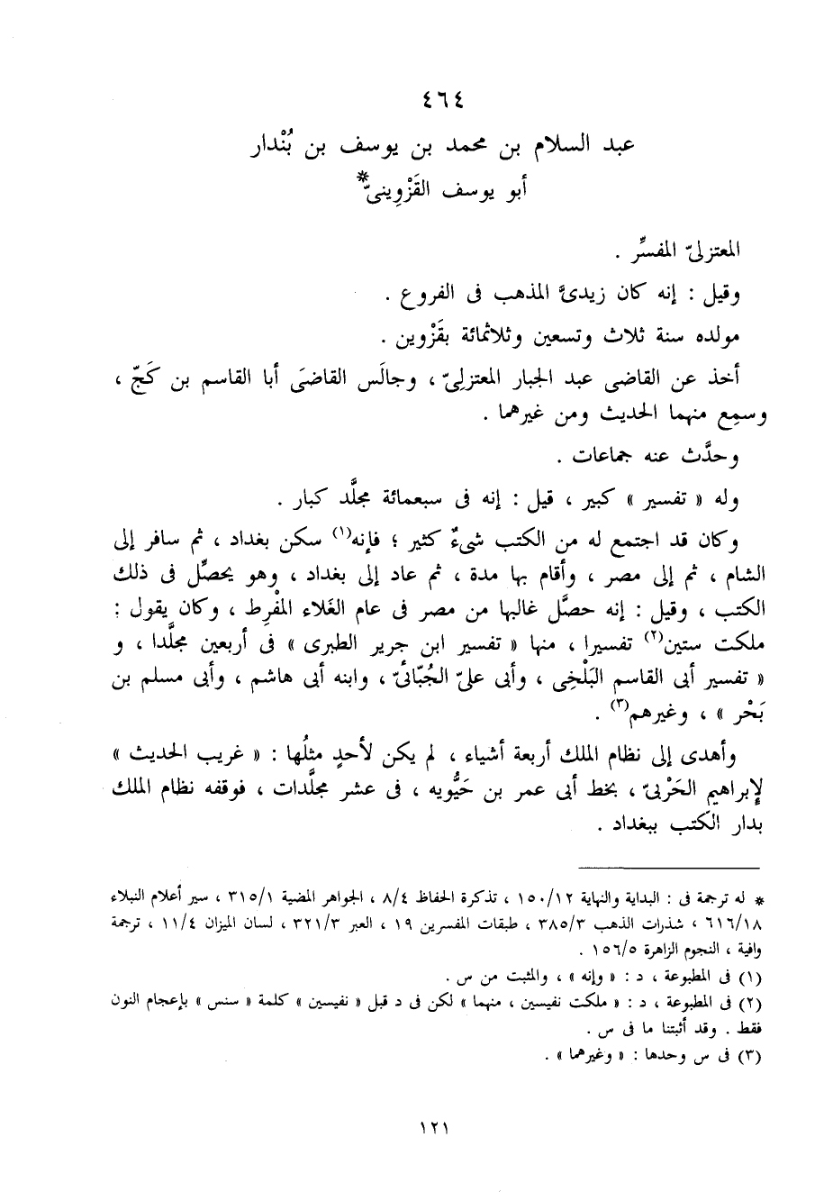 464 - عبد السَّلَام بن مُحَمَّد بن يُوسُف بن بنْدَار أَبُو يُوسُف الْقزْوِينِي