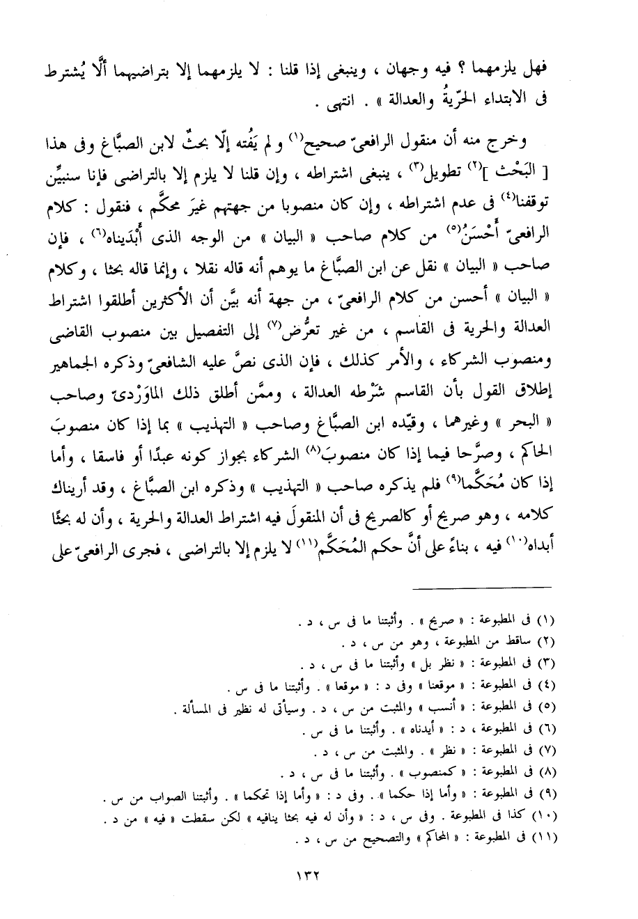 وَخرج مِنْهُ أَن مَنْقُول الرَّافِعِيّ صَحِيح وَلم يفته إِلَّا بحث لِابْنِ الصّباغ وَفِي هَذَا الْبَحْث تَطْوِيل يَنْبَغِي اشْتِرَاطه وَإِن قُلْنَا لَا يلْزم إِلَّا بِالتَّرَاضِي فَإنَّا سنبين توقفنا فِي عدم اشْتِرَاطه وَإِن كَانَ مَنْصُوبًا من جهتهم غير مُحكم فَنَقُول كَلَام الرَّافِعِيّ أحسن من كَلَام صَاحب الْبَيَان من الْوَجْه الَّذِي أبديناه فَإِن صَاحب الْبَيَان نقل عَن ابْن الصّباغ مَا يُوهم أَنه قَالَه نقلا وَإِنَّمَا قَالَه بحثا وَكَلَام الْبَيَان أحسن من كَلَام الرَّافِعِيّ من جِهَة أَنه بَين أَن الْأَكْثَرين أطْلقُوا اشْتِرَاط الْعَدَالَة وَالْحريَّة فِي الْقَاسِم من غير تعرض إِلَى التَّفْصِيل بَين مَنْصُوب القَاضِي ومنصوب الشُّرَكَاء وَالْأَمر كَذَلِك فَإِن الَّذِي نَص عَلَيْهِ الشَّافِعِي وَذكره الجماهير إِطْلَاق القَوْل بِأَن الْقَاسِم شَرطه الْعَدَالَة وَمِمَّنْ أطلق ذَلِك الْمَاوَرْدِيّ وَصَاحب الْبَحْر وَغَيرهمَا وَقَيده ابْن الصّباغ وَصَاحب التَّهْذِيب بِمَا إِذا كَانَ مَنْصُوب الْحَاكِم وصرحا فِيمَا إِذا كَانَ مَنْصُوب الشُّرَكَاء بِجَوَاز كَونه عبدا أَو فَاسِقًا وَأما إِذا كَانَ محكما فَلم يذكرهُ صَاحب التَّهْذِيب وَذكره ابْن الصّباغ وَقد أريناك كَلَامه وَهُوَ صَرِيح أَو كَالصَّرِيحِ فِي أَن الْمَنْقُول فِيهِ اشْتِرَاط الْعَدَالَة وَالْحريَّة وَأَن لَهُ بحثا أبداه فِيهِ بِنَاء على أَن حكم الْمُحكم لَا يلْزم إِلَّا بِالتَّرَاضِي فَجرى الرَّافِعِيّ على