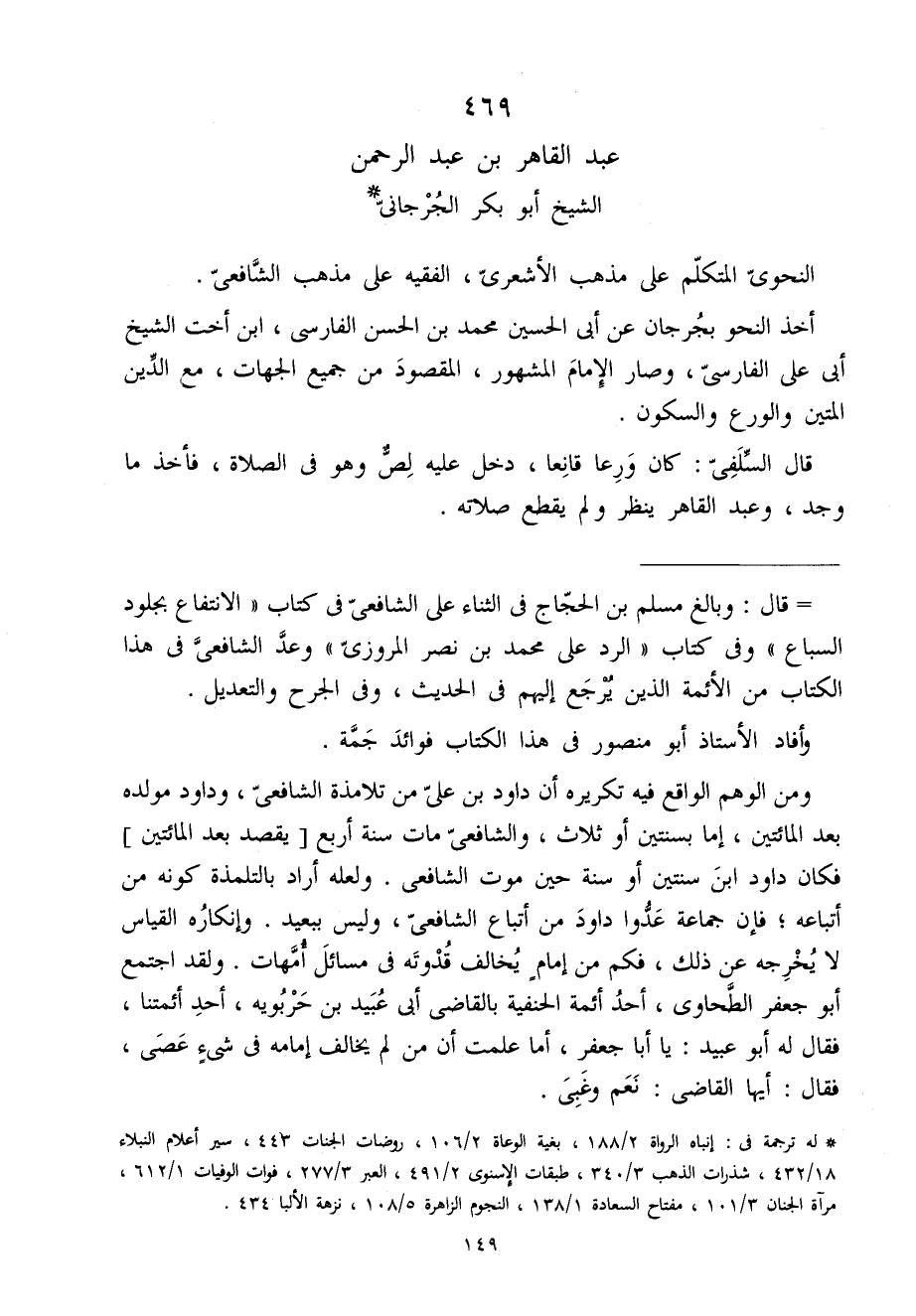 469 - عبد القاهر بن عبد الرَّحْمَن الشَّيْخ أَبُو بكر الْجِرْجَانِيّ