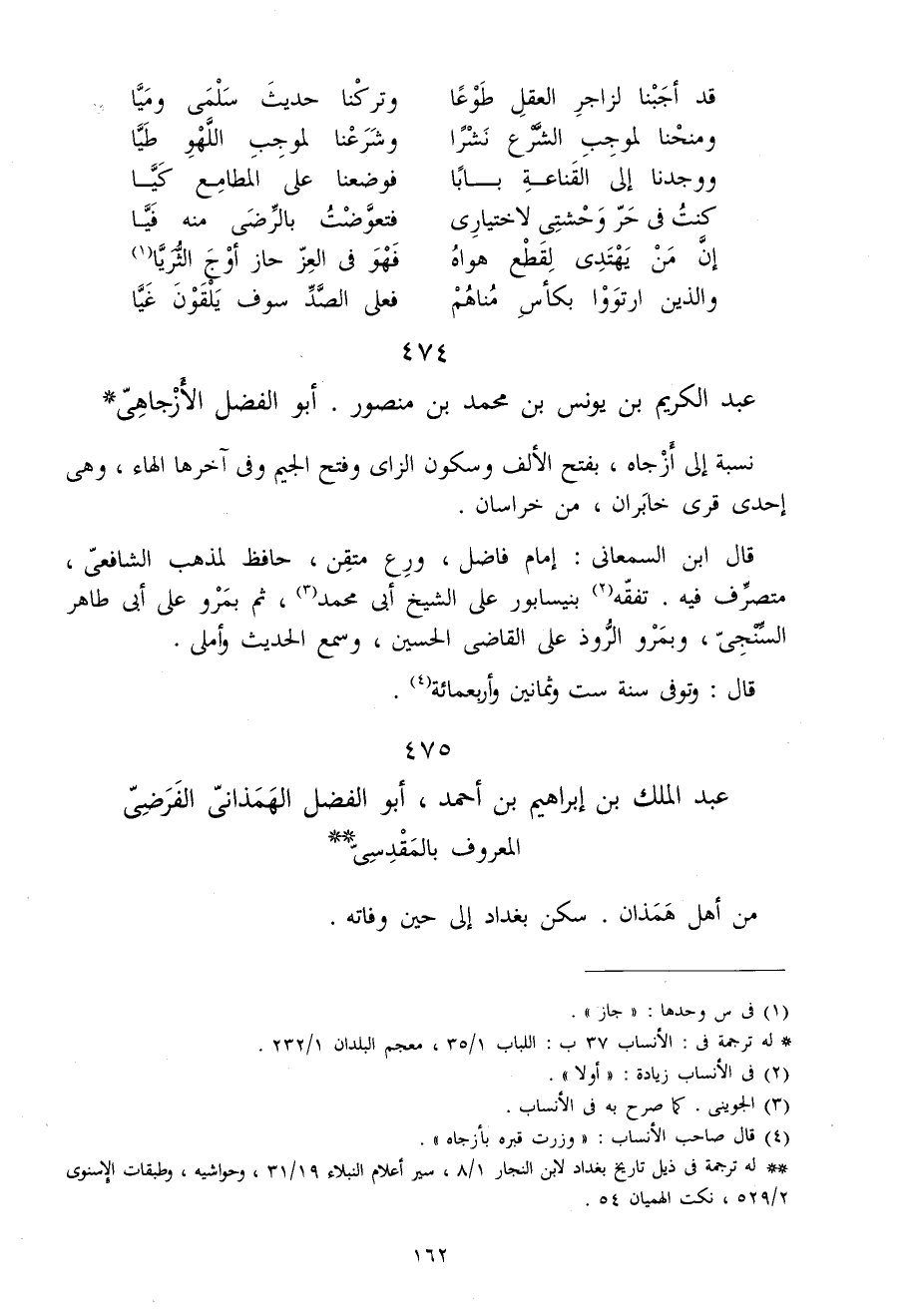 475 - عبد الْملك بن إِبْرَاهِيم بن أَحْمد أَبُو الْفضل الهمذاني الفرضي الْمَعْرُوف بالمقدسي