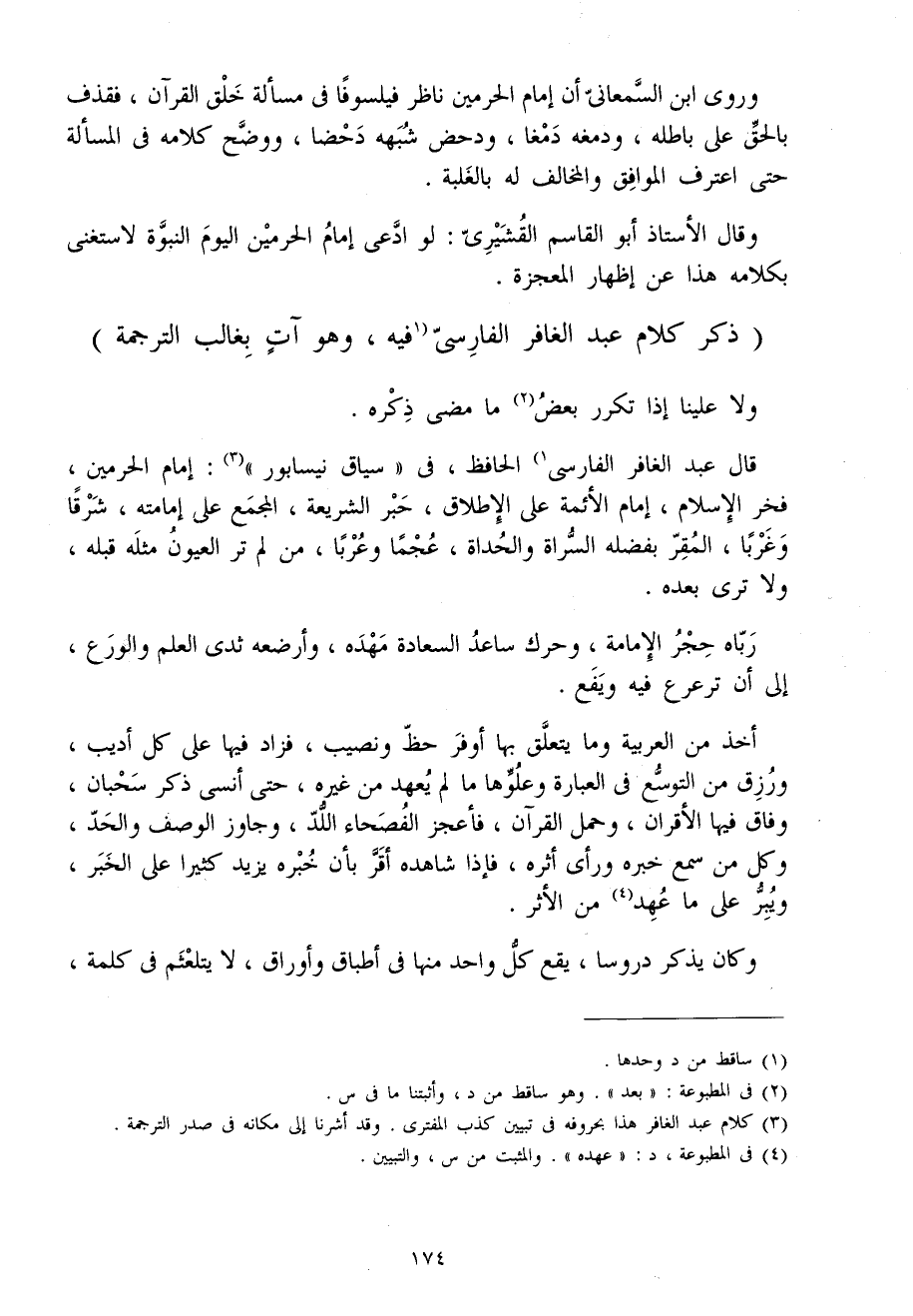 ذكر كَلَام عبد الغافر الْفَارِسِي فِيهِ وَهُوَ آتٍ بغالب التَّرْجَمَة