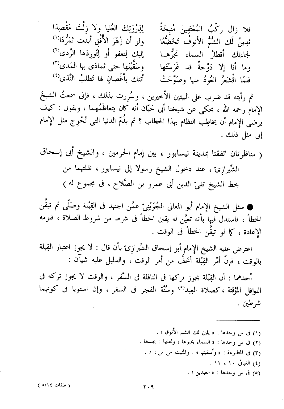 مناظرتان اتفقتا بِمَدِينَة نيسابور بَين إِمَام الْحَرَمَيْنِ وَالشَّيْخ أبي إِسْحَاق الشِّيرَازِيّ عِنْد دُخُول الشَّيْخ رَسُولا إِلَى نيسابور نقلتهما من خطّ الشَّيْخ تَقِيّ الدّين أبي عَمْرو بن الصّلاح فِي مَجْمُوع لَهُ