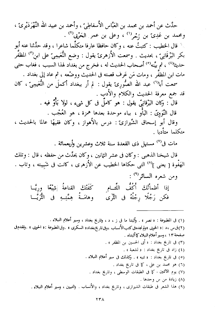 قَالَ شَيخنَا الذَّهَبِيّ وَكَانَ فِي عشر الثَّمَانِينَ وَكَانَ يحدث من حفظه قَالَ وَتلك الهفوة يَعْنِي الَّتِي حَكَاهَا الْخَطِيب عَن الْأَزْهَرِي كَانَت فِي شبيبته وَتَابَ