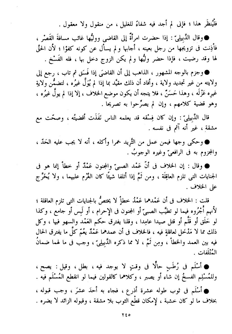 فَلْينْظر هَذَا فَإِنِّي لم أجد فِيهِ شِفَاء للغليل من مَنْقُول وَلَا مَعْقُول