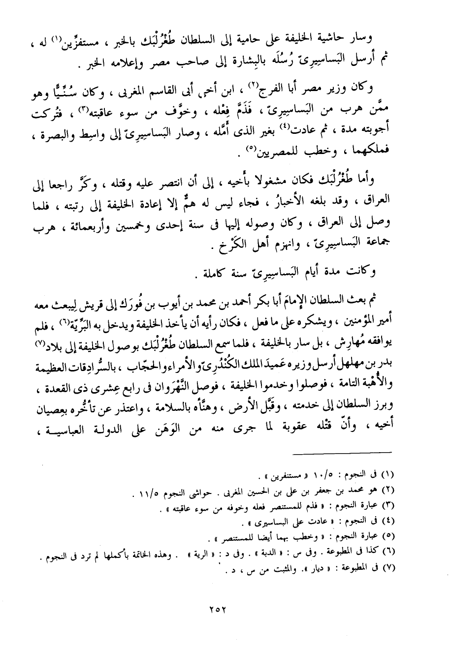 وَسَار حَاشِيَة الْخَلِيفَة على حامية إِلَى السُّلْطَان طغرلبك بِالْخَيرِ مستفزين لَهُ ثمَّ أرسل البساسيري رسله بالبشارة إِلَى صَاحب مصر وإعلامه الْخَبَر