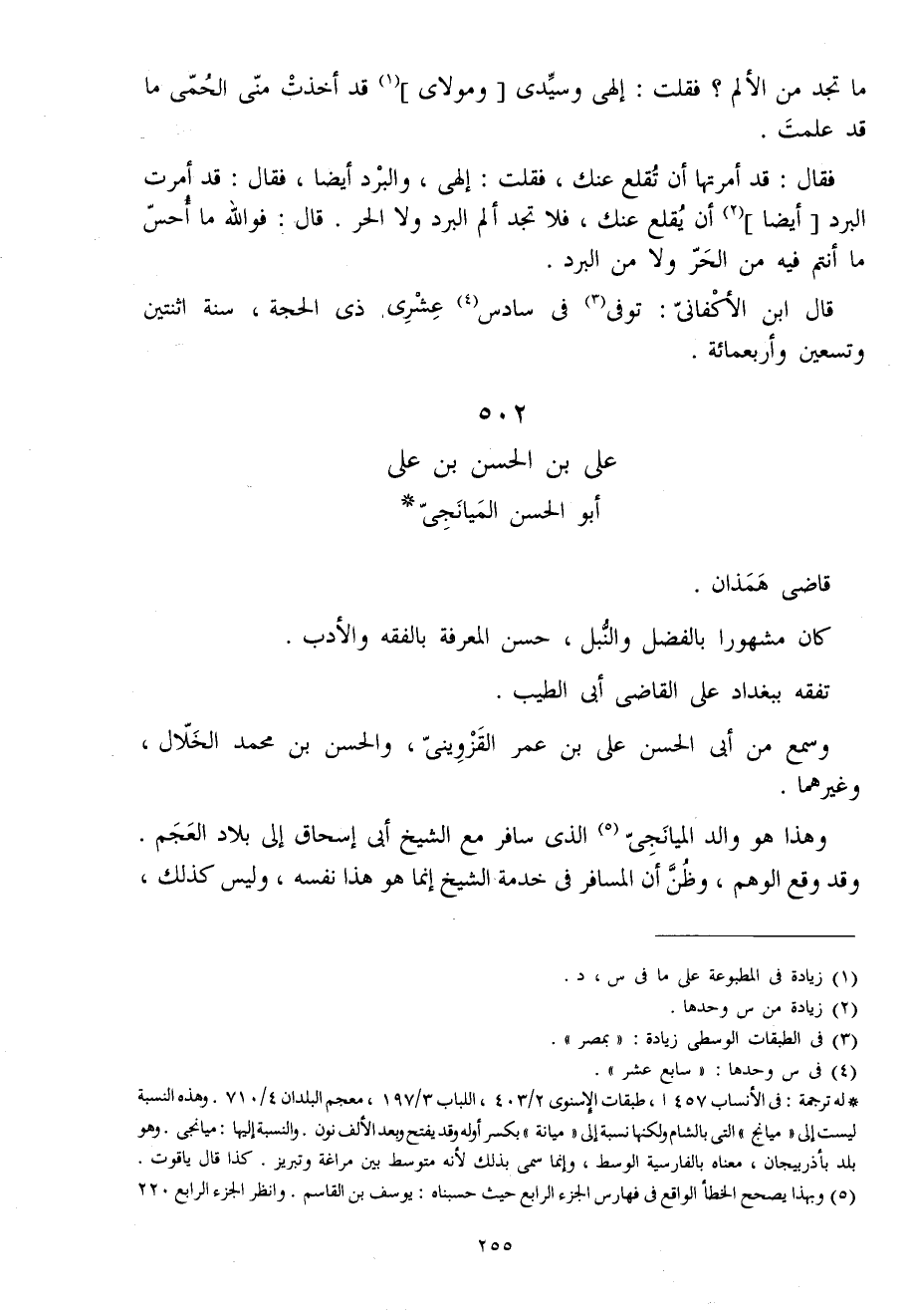 502 - على بن الْحسن بن على أَبُو الْحسن الميانجي قَاضِي همذان