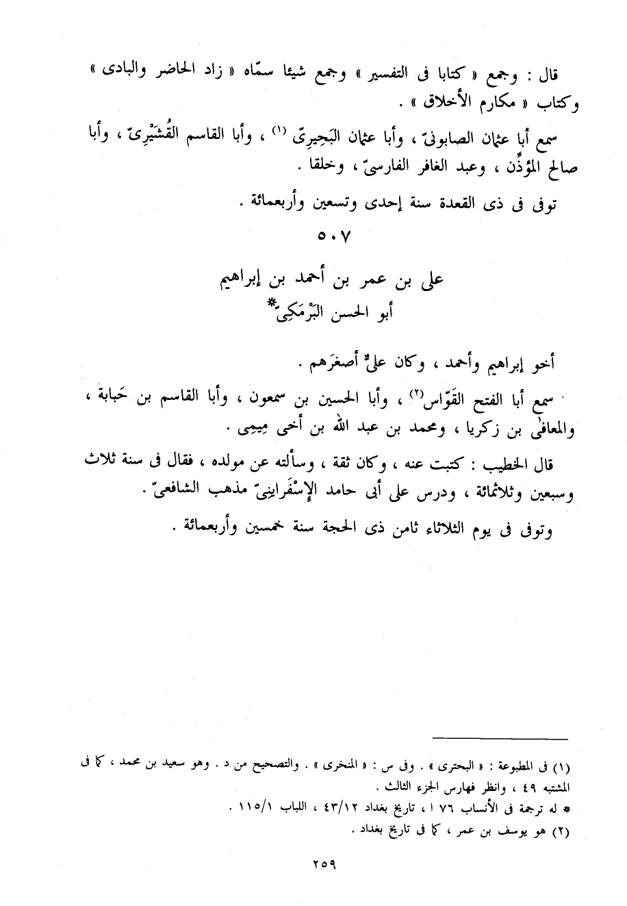 507 - عَليّ بن عمر بن أَحْمد بن إِبْرَاهِيم أَبُو الْحسن الْبَرْمَكِي