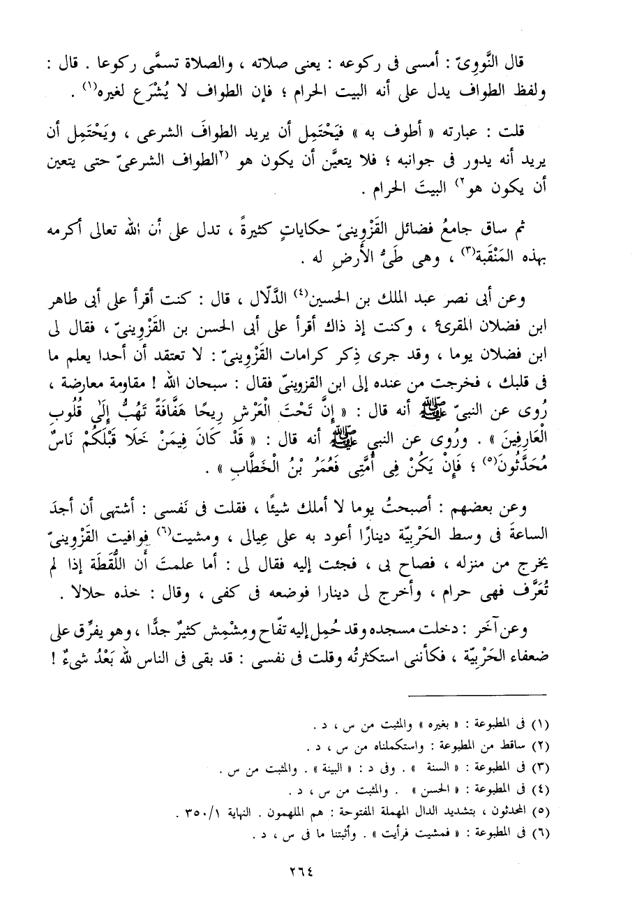 ثمَّ سَاق جَامع فَضَائِل الْقزْوِينِي حكايات كَثِيرَة تدل على أَن الله تَعَالَى أكْرمه بِهَذِهِ المنقبة وَهِي طَيء الأَرْض لَهُ
