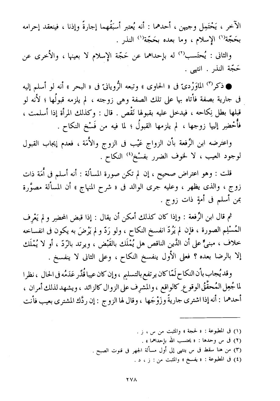 ثمَّ قَالَ ابْن الرّفْعَة وَإِذا كَانَ كَذَلِك أمكن أَن يُقَال إِذا قبض الْمحْضر وَلم يعرف الْمُسلم الصُّورَة فَإِن لم يرد انْفَسَخ النِّكَاح وَلَو رد وَلم يرض بِهِ يكون فِي انفساخه خلاف مَبْنِيّ على أَن الدّين النَّاقِص هَل يملك بِالْقَبْضِ ويرتد بِالرَّدِّ أَو لَا يملك إِلَّا بِالرِّضَا بعده فعلى الأول يَنْفَسِخ النِّكَاح وعَلى الثَّانِي لَا يَنْفَسِخ