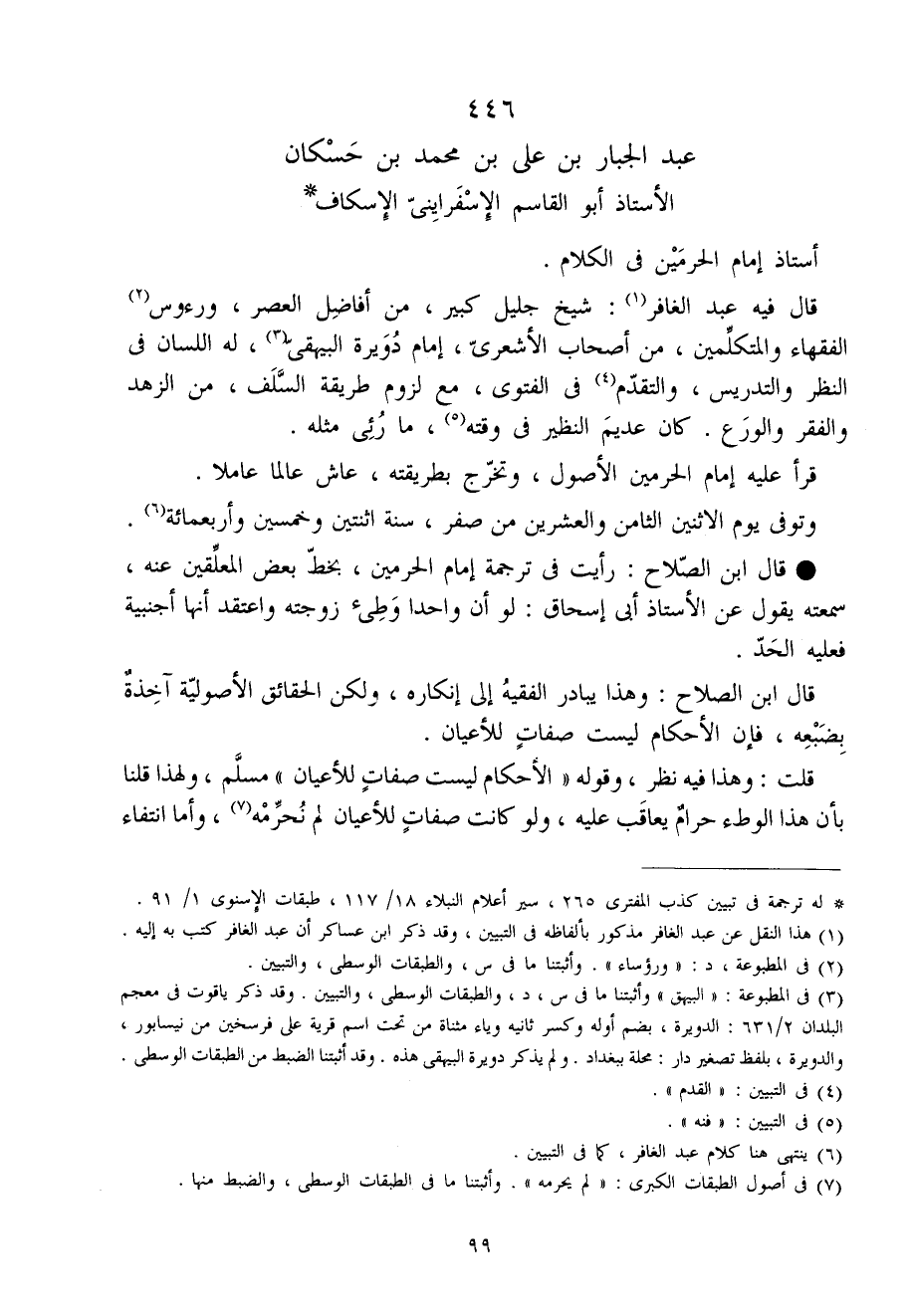 446 - عبد الْجَبَّار بن عَليّ بن مُحَمَّد بن حسكان الْأُسْتَاذ أَبُو الْقَاسِم الإسفرايني الإسكاف