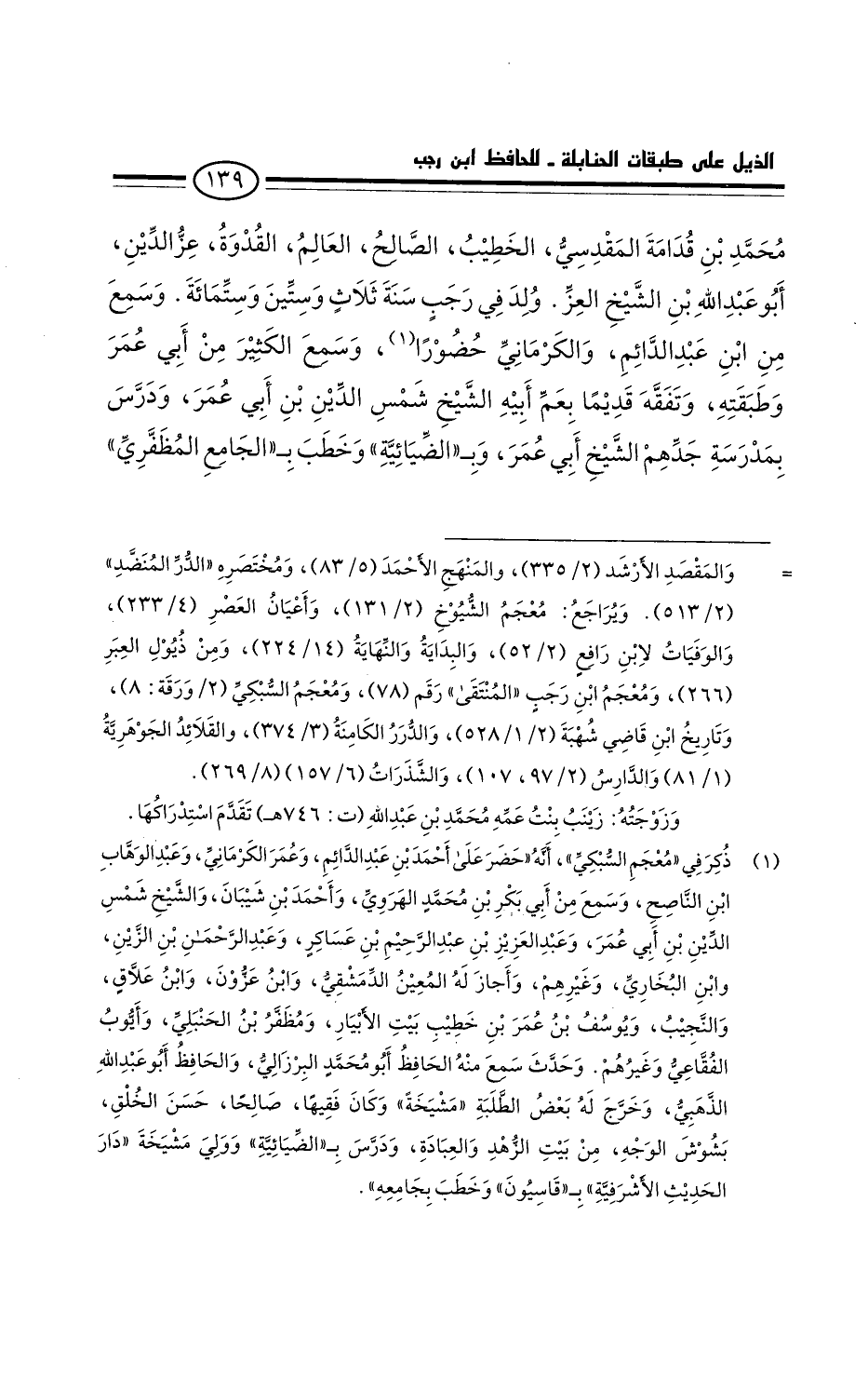 مُحَمَّد بْن قدامة المقدسي، الخطيب الصالح، العالم القدوة، عز الدين أَبُو عَبْد اللَّهِ ابْن الشيخ العز: ولد فِي رجب سنة ثلاث وستين وستمائة.