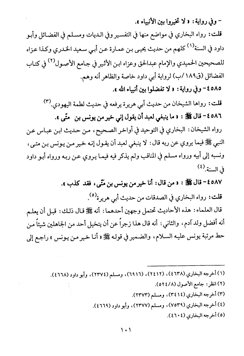 4587 - قال - صلى الله عليه وسلم -: "من قال: أنا خير من يونس بن متى، فقد كذب".