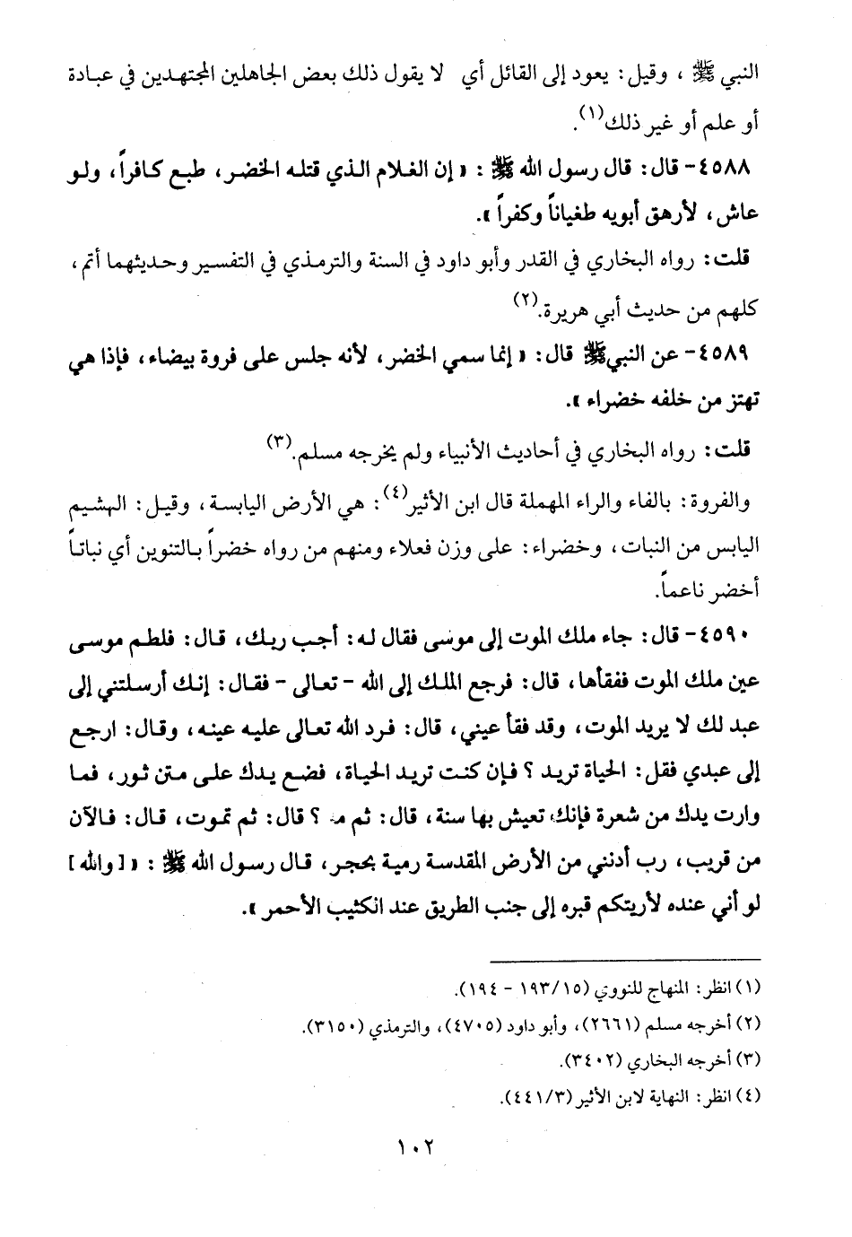 4589 - عن النبي - صلى الله عليه وسلم - قال: "إنما سمي الخضر، لأنه جلس على فروة بيضاء، فإذا هي تهتز من خلفه خضراء".