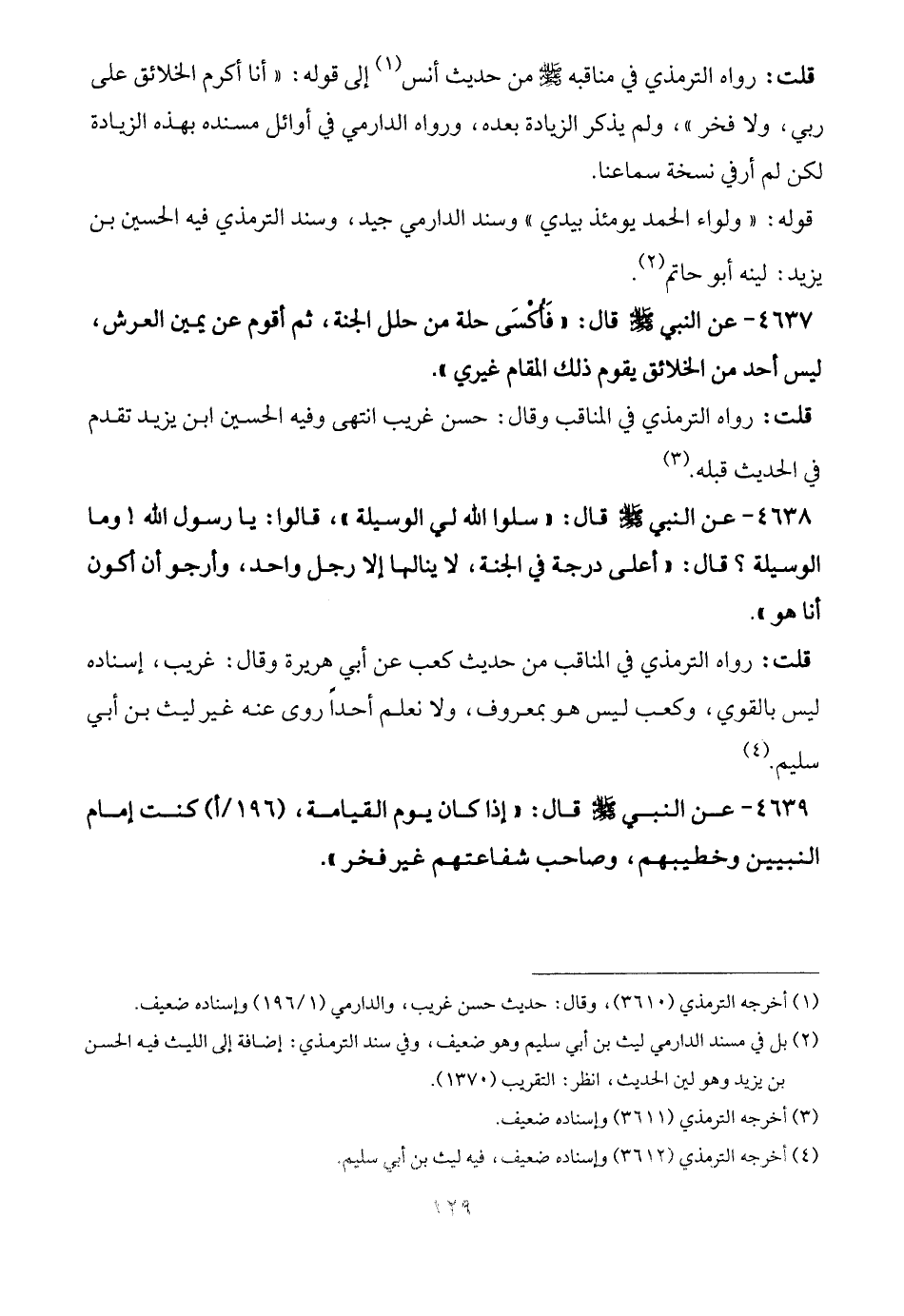 (¬4) أخرجه الترمذي (3612) وإسناده ضعيف، فيه ليث بن أبي سليم.