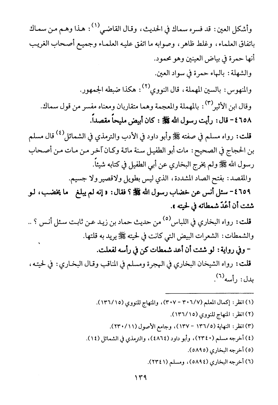 قلت: رواه البخاري في اللباس (¬5) من حديث حماد بن زيد عن ثابت سئل أنس؟ .. والشمطات: الشعرات البيض التي كانت في لحيته - صلى الله عليه وسلم - يريد به قلتها.
