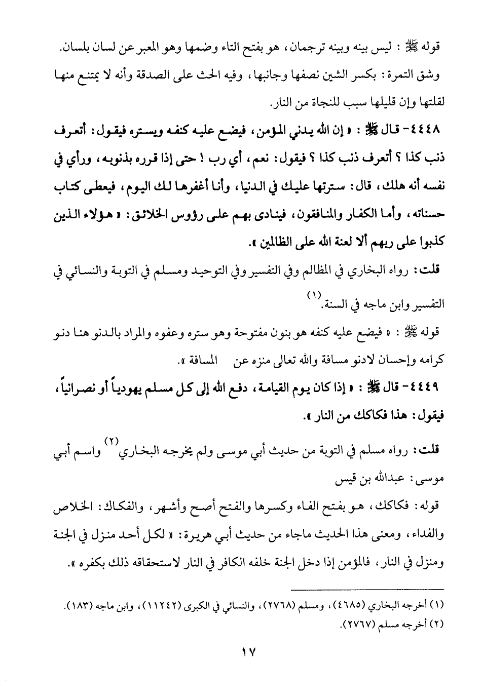 قلت: رواه البخاري في المظالم وفي التفسير وفي التوحيد ومسلم في التوبة والنسائي في التفسير وابن ماجه في السنة. (¬1)