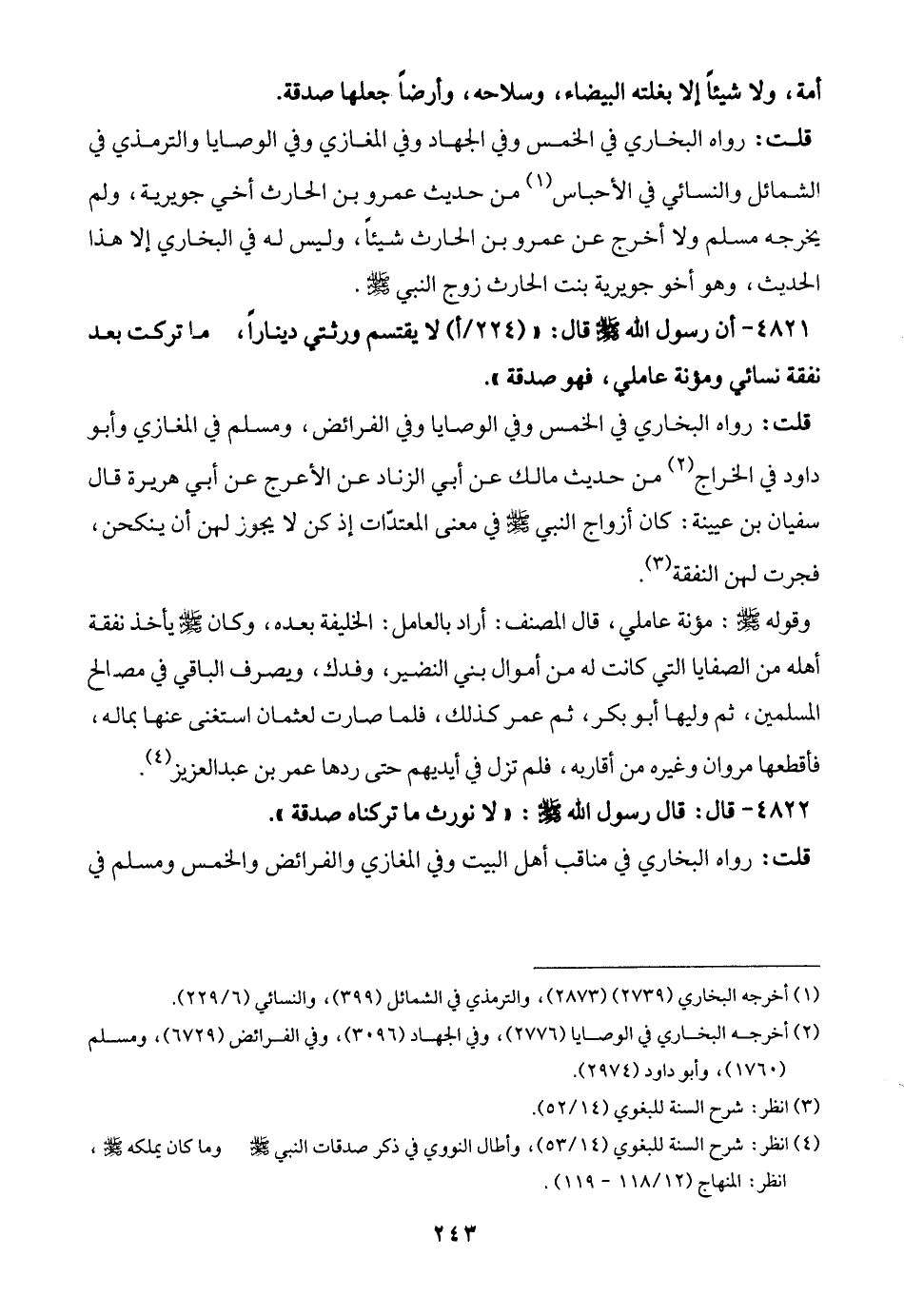 (¬4) انظر: شرح السنة للبغوي (14/ 53)، وأطال النووي في ذكر صدقات النبي - صلى الله عليه وسلم - وما كان يملكه - صلى الله عليه وسلم -، انظر: المنهاج (12/ 118 - 119).