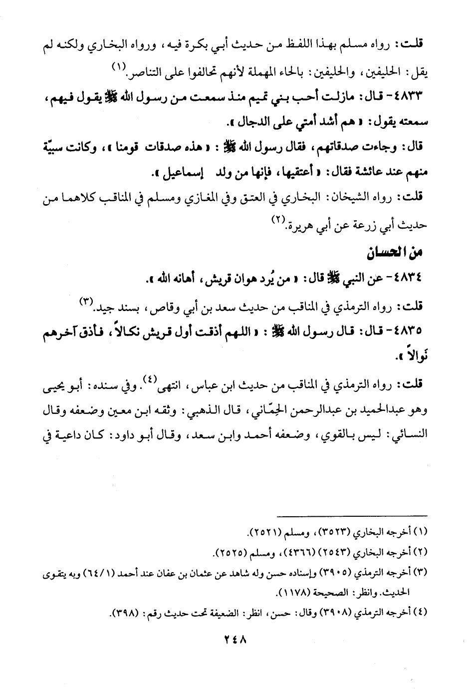 (¬4) أخرجه الترمذي (3908) وقال: حسن، انظر: الضعيفة تحت حديث رقم: (398).