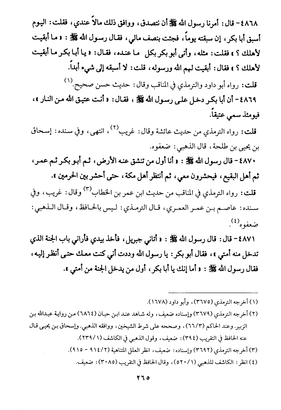 (¬3) أخرجه الترمذي (3692) وإسناده: ضعيف، انظر العلل المتناهية (2/ 914 - 915).