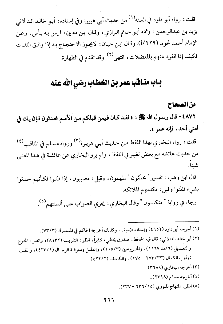 4872 - قال رسول الله -صلى الله عليه وسلم-: "لقد كان فيمن قبلكم من الأمم محدثون فإن يك في أمتي أحد، فإنه عمر".