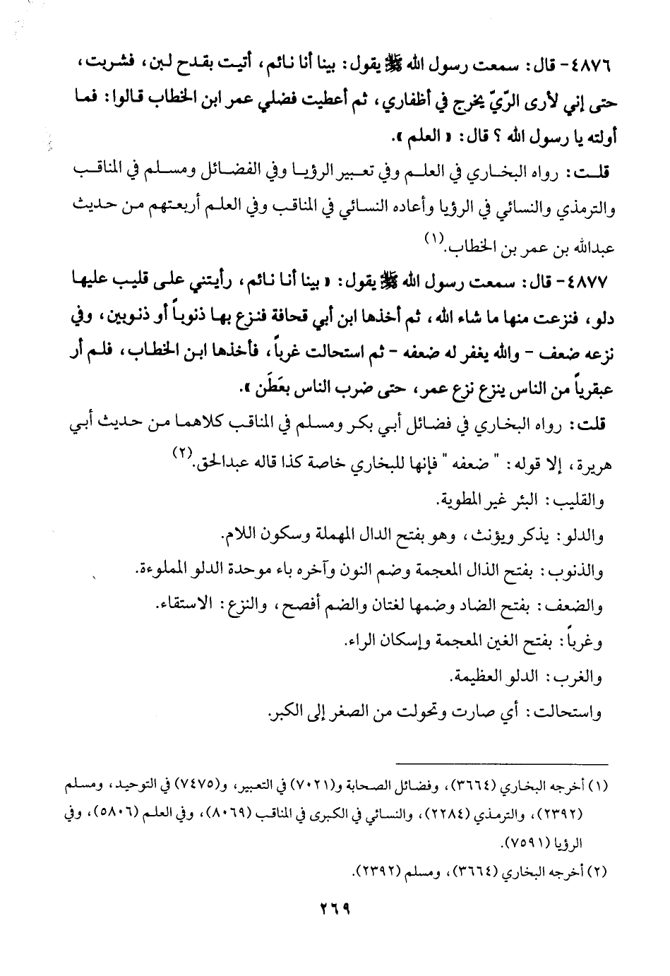 (¬1) أخرجه البخاري (3664)، وفضائل الصحابة و (7021) في التعبير، و (7475) في التوحيد، ومسلم (2392)، والترمذي (2284)، والنسائي في الكبرى في المناقب (8069)، وفي العلم (5806)، وفي الرؤيا (7591).